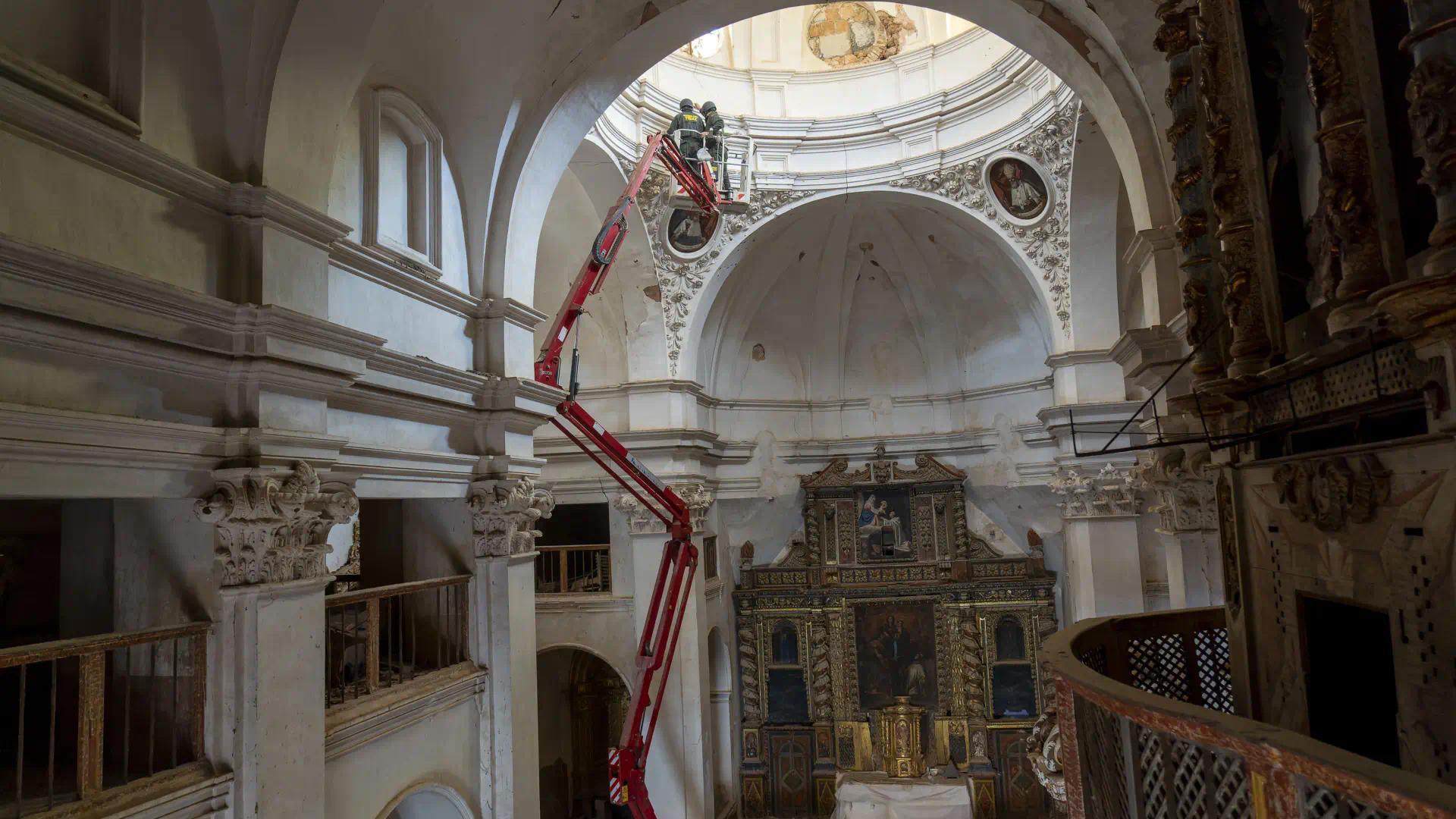 El hallazgo se produjo durante las obras de restauración que se están llevando a cabo en el templo. Los trabajadores alertaron al 091 al detectar en un lateral de la cúpula lo que parecía ser un proyectil incrustado en la estructura.