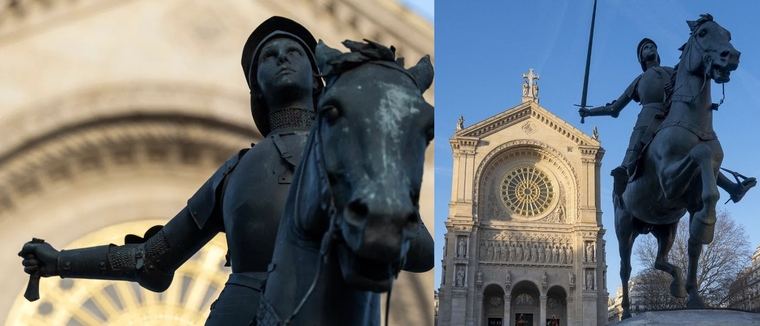 La estatua de Juana de Arco fue creada en 1895 por el escultor Paul Dubois y se encuentra cedida a la ciudad de París procedente de la colección del Museo de Orsay. Fue restaurada en 2021 y es la única estatua en París que representa a la Doncella de Orleans con una espada en la mano derecha y se considera una parte importante del patrimonio cultural y religioso de la ciudad.