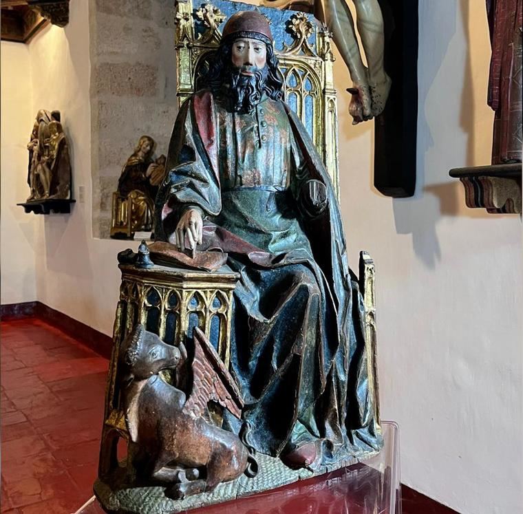 Se trata de una escultura de madera policromada, de unos 70 centímetros de altura, que formaba parte del retablo mayor de la Iglesia de Santa Eugenia de Astudillo (Palencia), del que también fueron robados el mismo día seis apóstoles, los cuatro evangelistas, una escultura exenta y una cruz. Este retablo de Santa Eugenia es una obra atribuida a Gil de Siloé, una de las figuras más destacadas de la escultura española de finales del siglo XV, cuando las formas del gótico postrero, hibridadas por las del arte mudéjar y las influencias flamencas de tipo flamígero, dieron origen al conocido como “gótico isabelino”, exclusivo de España.