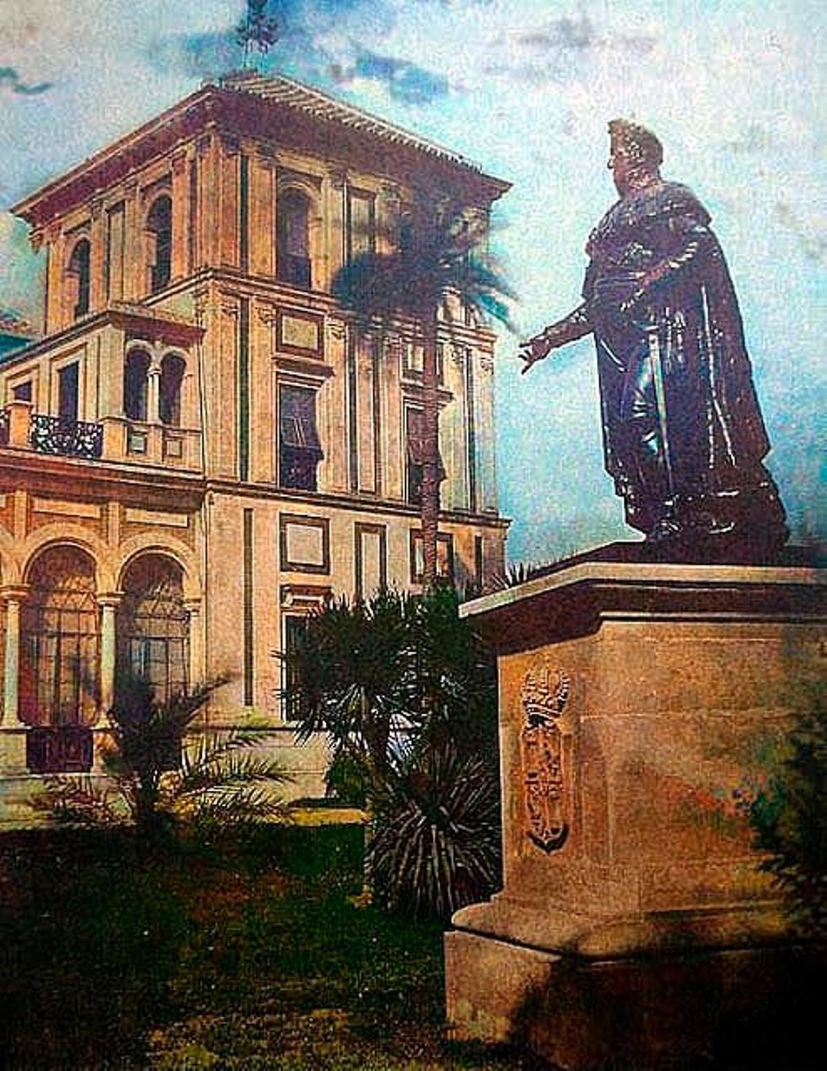 La escultura, que fue creada en 1831, inició su recorrido en 1835, cuando 'La Bullanga', una revuelta popular contra el absolutismo, la hizo caer del pedestal que ocupaba originalmente en Barcelona. en 1840 María Cristina de Borbón-Dos Sicilias, viuda de Fernando VII, se la llevó durante su exilio en Francia en. En 1861, Napoleón III adquirió su palacio y decidió obsequiar la obra a la infanta María Luisa Fernanda , duquesa de Montpensier. Esta última optó por trasladarla a Sevilla a finales de 1876 y ubicarla en los jardines de su palacio.