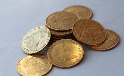 Algunas de las monedas robadas. Son doblones de ocho escudos, las monedas de máximo valor en siglo XVIII y principios del XIX.